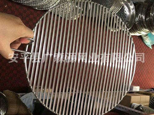 產品簡介:圓形燒烤篦子拋光的作用:1.表面光滑,不容易粘魚。2.焊點不容易生銹。3.同時可以減少焊渣,減少毛刺。特性與用途:201 304不銹鋼為國家公認的食品級不銹鋼。具有良好的耐蝕性、耐熱性、低溫強度和機械特性。適合用于食品的烘烤加工。
